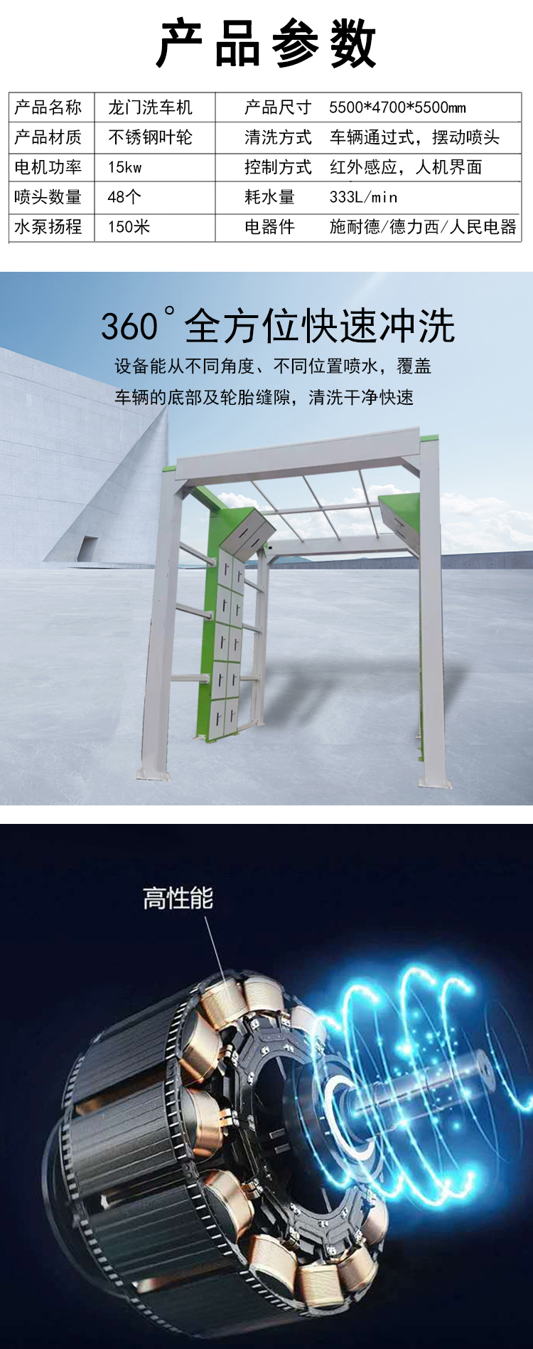 车辆进入洗车机:当车辆进入龙门式洗车机时,传感器会检测到车辆的大小和位置,并向电控系统发送信号。